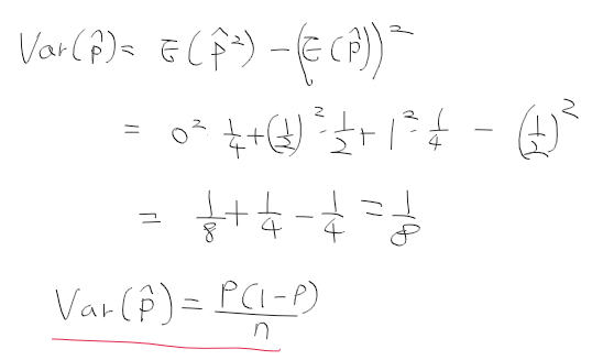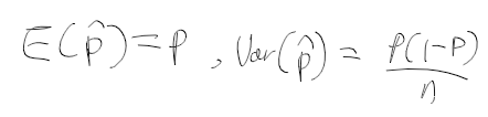 - 이항 분포 B(n, p)을 따르는 확률 변수 Sn(Sigma X_i)를 표본수로 나눈것