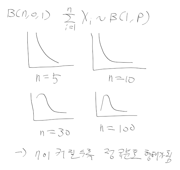 - 한사람 한사람은 확률 변수. 각 확률 변수는 베르누이 시행 B(1,p)을 따른다.