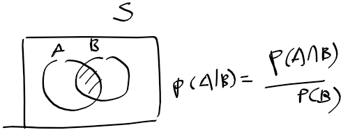 - 사건 B가 발생한다고 가정할떄 A가 발생할 확률
