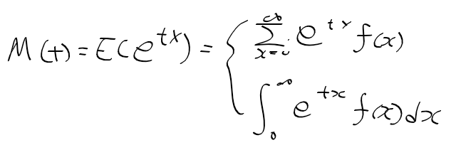 - 적률 생성함수를 k승 미분하고 t를 0으로 하면 구할 수 있다.