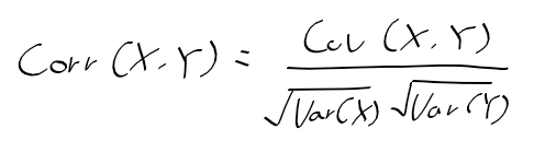 - 두 확률 변수가 선형적으로 같이 변하는 정도의 측도