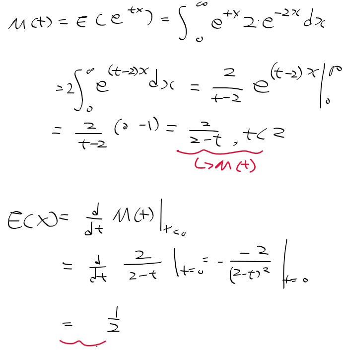 적률 예제 2 - X의 적률 생성 함수와, 1차 적률인 기대값