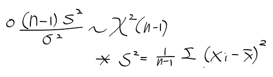 - 확률 변수가 (n-1) 표본분산/분산인 경우, 자유도가 n-1인 카이제곱 분포를 따른다.