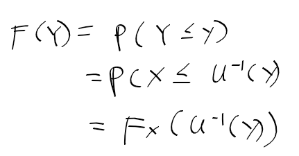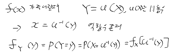 - 변수 변환법 : 확률 변수 함수에 대한 확률 밀도 함수를 구하는 방법