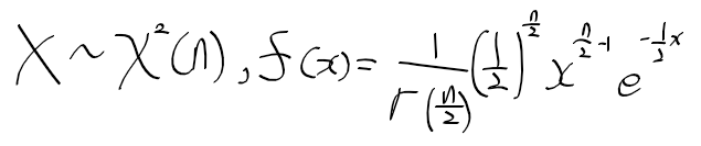 - 감마 분포의 특수한 경우로 Gamma(r, lambda)에서 r = n/2, lambda = 1/2임