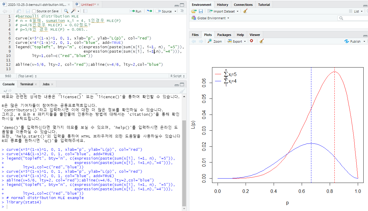1. 베르누이 분포 최대 가능도 함수로 확률 구하기
