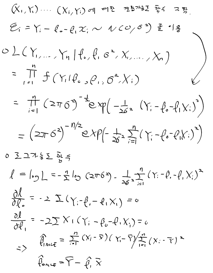 3. 단순 선형회귀 모델 beta0, beta1, sigma^2 최대 가능도 추정량 구하기