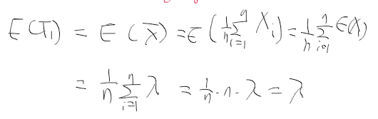 => E(T1) = E(bar{X}) = lambda로 모수임을 증명함