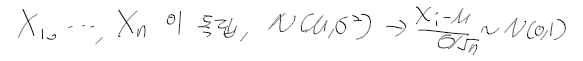 - 보통 모집단이 정규분포를 따르고, 확률변수들이 독립이면 아래와 같으나