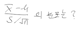 - 위 통계량의 분포는 정규분포가 아니라 t분포를 따름