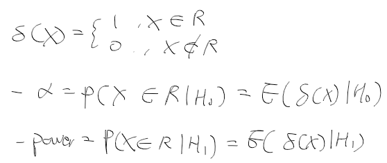 - delta(x) = 1/2 : 귀무가설 기각확률 0.5