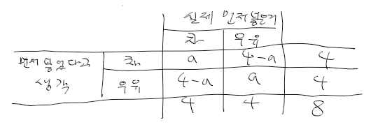 - a는 홍차를 먼저 넣었다고 올바르게 판단한 잔의 수. a는 0~4 중 한가지 값.
