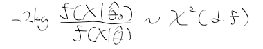 - 귀무가설이 참일떄 가능도비의 로그변환된 식의 근사적 분포는 카이제곱 분포를 따른다.