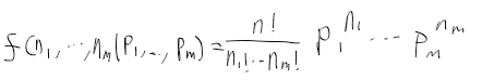 - 전체 빈도수를 n이라 할때 빈도수는 다항분포를 따름. 확률질량 함수는 다음과 같다.