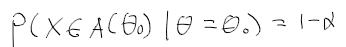 - 유의수준 alpha에서 채택역 A(theta0)일때 다음 식 성립