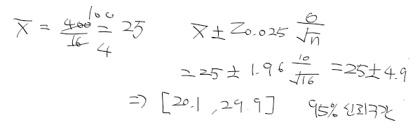 - sigma가 10, 모평균에 대한 95%신뢰구간