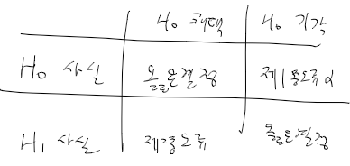 - 유의확률이 작다면 타당성이 낮아서 귀무가설 기각