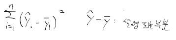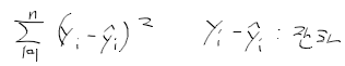 - 잔차 제곱합 : 적합된 값들의 총 변동성(SSR; residual sum of squares). 설명 안된 변동 residual ss