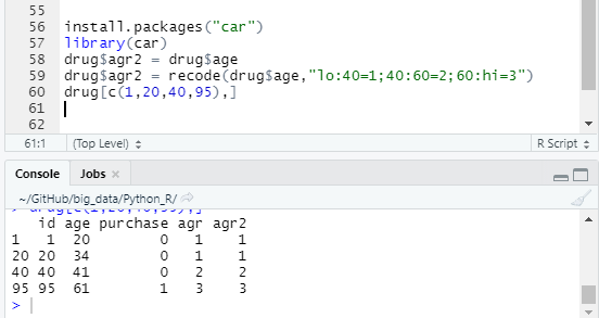 변수값 변환하기 recode - car 패키지의 recode() 활용하기