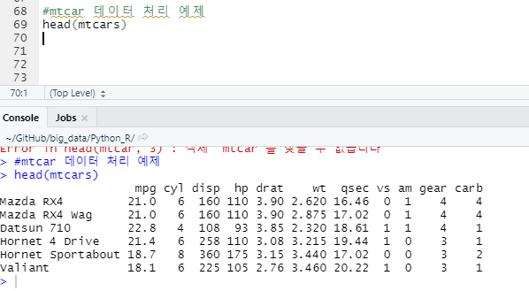 mtcar 데이터 처리 예제