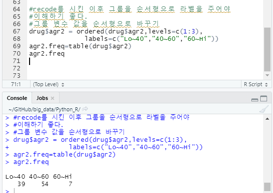 - 레코드 후, 순서형 변수로 라벨을 주어야 그룹의 의미를 알기 편하다.