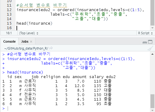 순서형 변수 ordered data 로 바꾸기