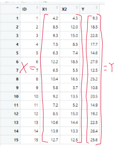 - 독립변수 : 광고료 x1, 상점크기 x2