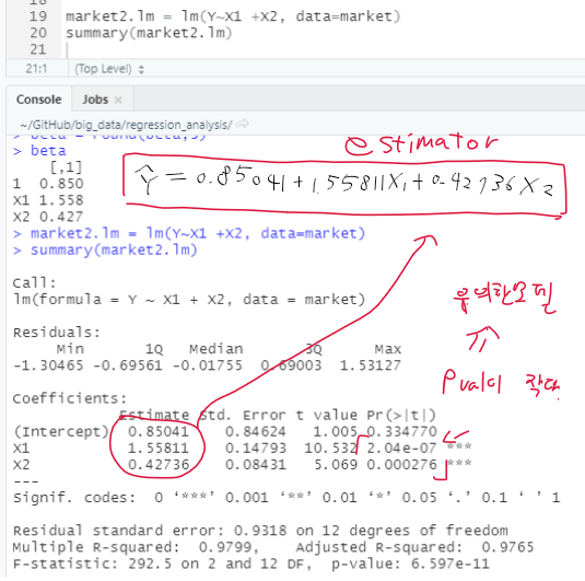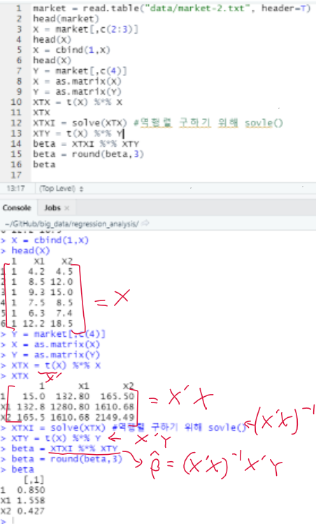 다중 회귀 모형 - 행렬 + 독립변수 2개