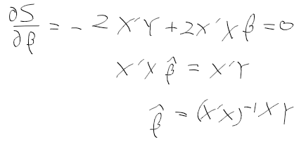 - beta에 대하여 미분하고, hat beta(estimate beta)를 구한다.