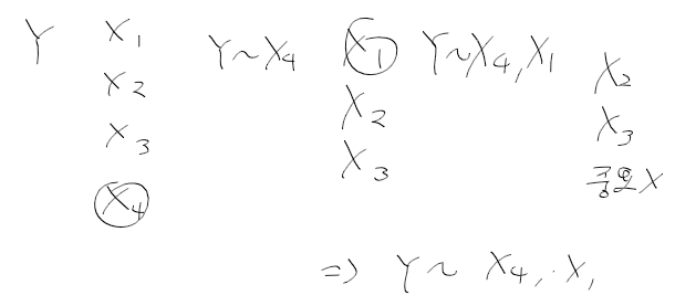 - 앞에서부터 선택 forward selection