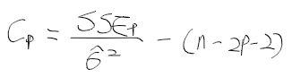 - k개의 독립변수 중에서 p개의 변수를 선택할때, C_p가 최소가되는 모형을 선택