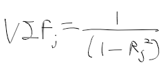 - R_j^2 : Xj를 반응변수로 보고 나머지 설명변수에 대한 결정 계수