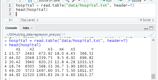 병원 데이터를 이용한 예제