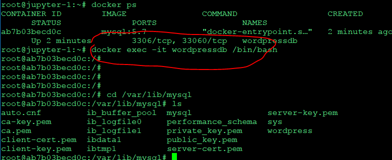 docker exec -it wordpressdb /bin/bash