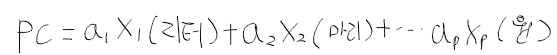 - 여러개의 구조적 해석이 힘들며, 서로 상관관계를같는 변수들을 적절히 선형변환 시킴