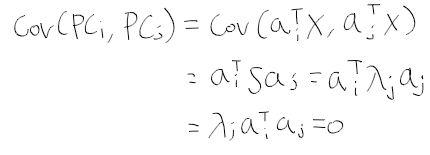 - 주성분들사이 공분산은 0으로 독립임