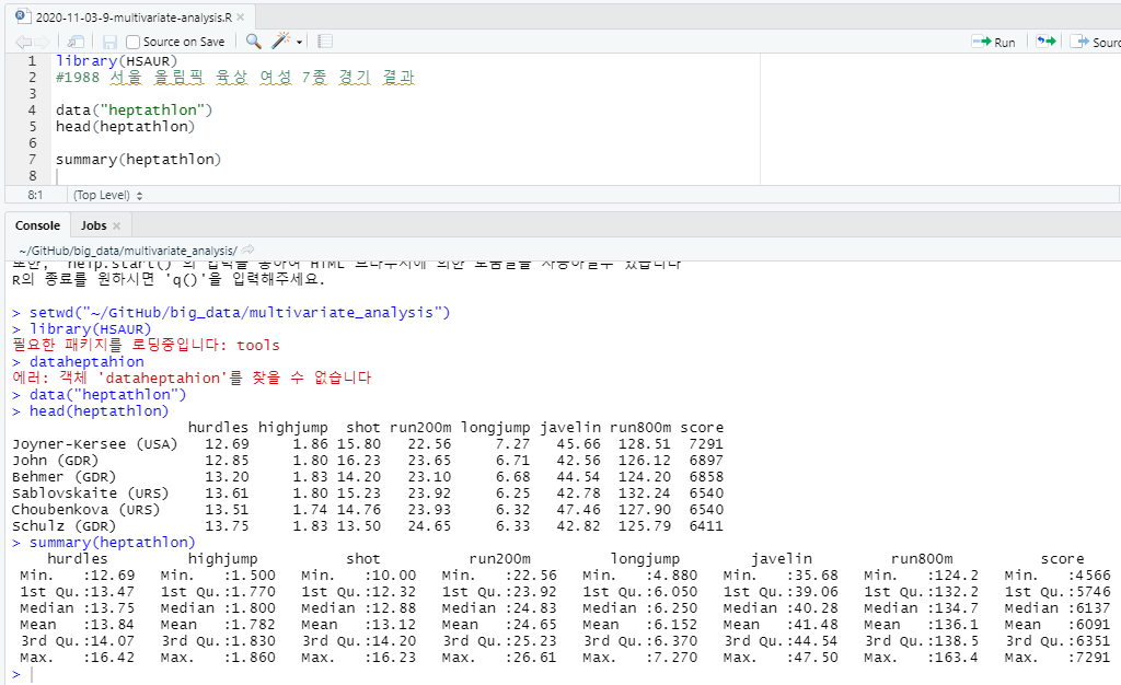 1988년 서울 올림픽 육상 여성 7종 경기 결과에 대한 주성분 분석