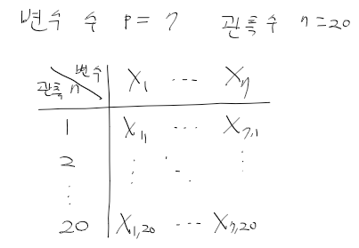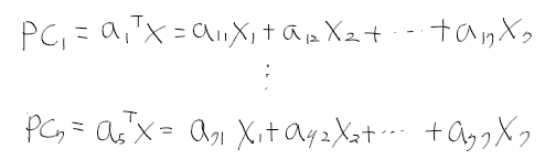 - 기존의 p개의 변수 벡터 X에서 변이(정보)를 잃지 않는 한 작은 수의 주성분유도
