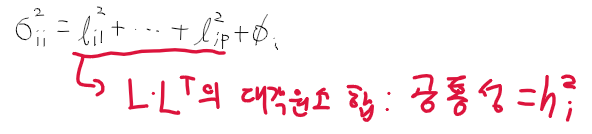 - Sigma의 분산 = L L'의 대각 원소들의 합과 오차항 분산의 합