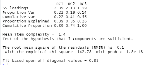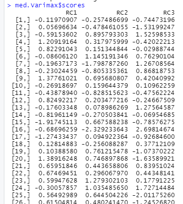 => RC1 : 22%, RC2 : 19%, RC3 : 14%로 세 인자로 설명 가능한 변동은 총 변동의 56%