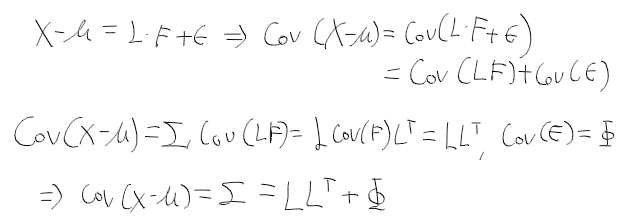 - 인자 분석에서 p개의 변수 X = (X1, X2, .., Xp)가 있을때, X의 공분산 행렬과 기대값은 아래와 같음